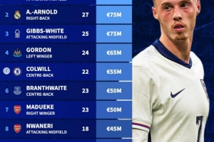 4、戈登(纽卡)6500万欧