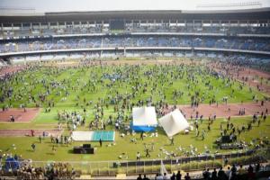 据印度媒体报道,由于赛事组织方的管理混乱和安全漏洞问题,梅西不得不提前结束绕场,球迷对当地官员发出嘘声、丢水瓶,最终大批球迷冲进场内对体育场进行破坏。