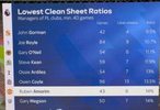 天空体育在节目中给出一组数据统计:在英超执教场次不少于40场的主教练里,阿莫林挤进“零封比例”最低榜历史前第7。
