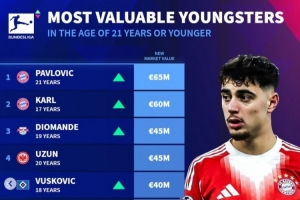 德甲U21身价榜:帕夫洛维奇压卡尔居首 迪奥曼德、乌尊、马拉在列