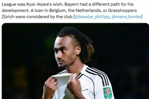 体育资讯1月2日讯 据记者Philipp Kessler报道,富勒姆考虑在本月提前终止拜仁18岁前锋库西·阿萨雷的租借合同。