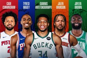 体育资讯01月20日讯 2026年NBA全明星周末,东部全明星首发出炉,他们是布伦森、字母哥、马克西、坎宁安、杰伦·布朗。
