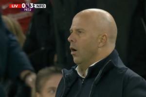 体育资讯11月23日讯 利物浦vs森林第78分钟,利物浦再丢一球,比分变为0-3!转播镜头马上切给了斯洛特!